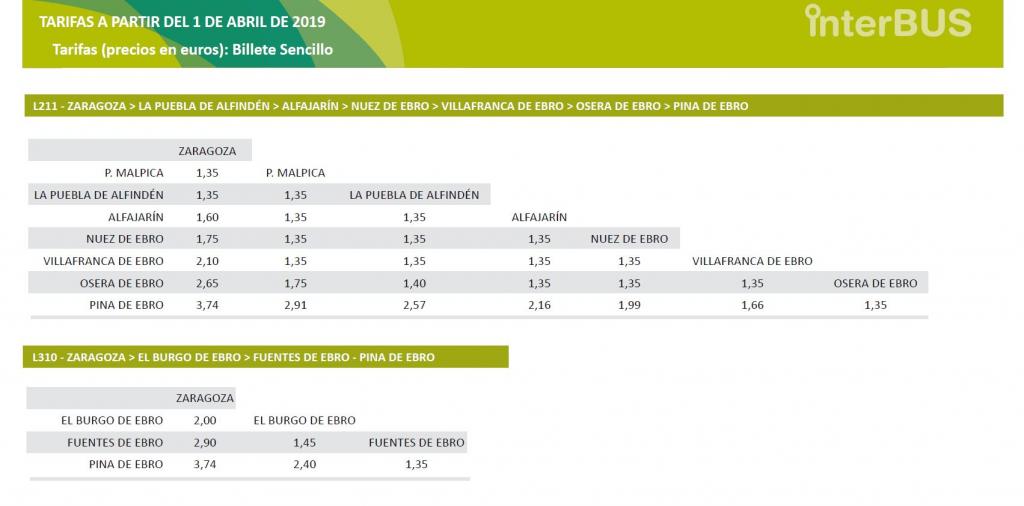 A partir del lunes 1 de abril de 2019 sube la tarifa Zaragoza-Pina de Ebro