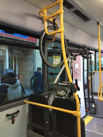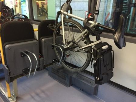Para ello se ha desarrollado una solución pionera en España diseñada por el Consorcio de Transportes en colaboración con las empresas zaragozanas Movibus Service y Automóviles Zaragoza, que permite anclar las bicicletas en una zona especialmente habilitada a tal efecto, preservando la seguridad y comodidad de todos los viajeros. Unos asientos plegables facilitan el uso habitual de este espacio cuando no es ocupado por bicicletas.