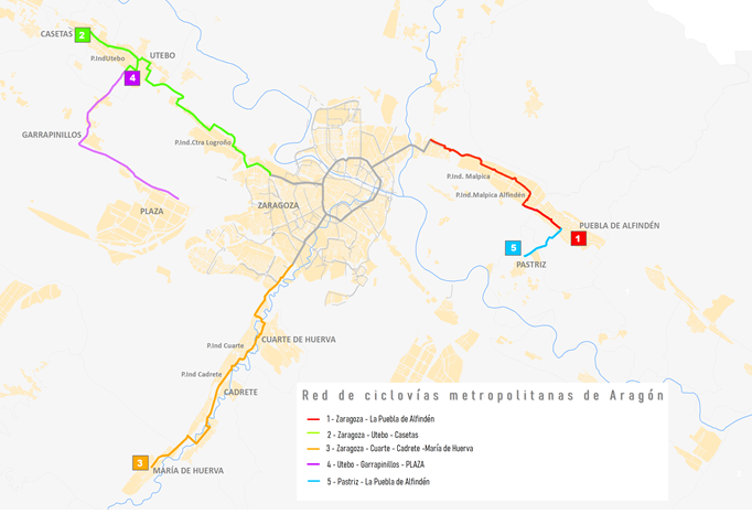 Esta actuación junto al carril bici entre La Puebla de Alfindén y Pastriz, son las primeras con las que se da inicio a la materialización de la red de ciclovías metropolitanas de Zaragoza, que prevé una extensión total de 48 km, una vez se lleguen a materializar las 5 actuaciones que se prevé financiar en con cargo a los fondos recibidos por el Gobierno de Aragón en el marco de Plan de Recuperación Transformación y Resiliencia.