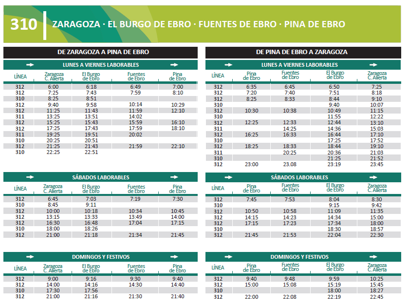 [L310, L311, L312] NUEVOS HORARIOS DESDE EL VIERNES 4 DE OCTUBRE DE 2024